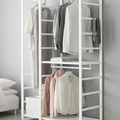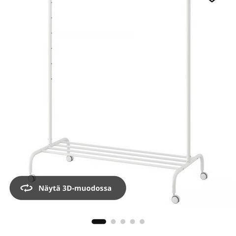 Ikean jokin vastaava hengariteline kuten kuvassa, pyörillä. Lukee merkintä Mulig, mutta tässä versiossa on pyörät. Kasassa, joten helposti kuljetettavissa. Nouto.