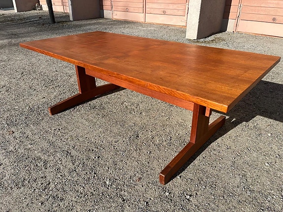 Tiikkipinnassa on nähtävissä hienoa, iän tuomaa vintage-patinaa. Sirot jalat ja linjakas muotoilu tekevät tästä kevyen ja ilmavan näköisen kalusteen.