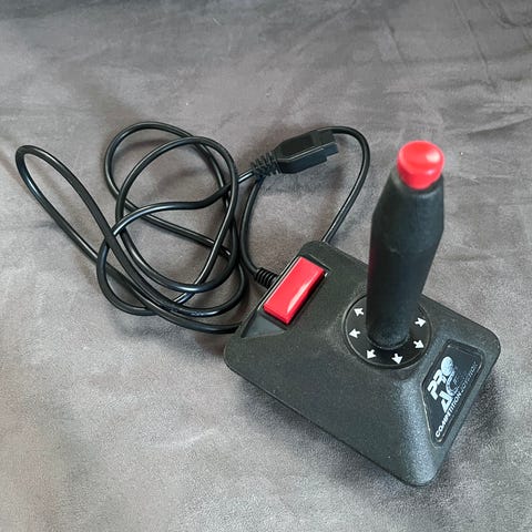 Quickjoy V SV-125 Superboard joystick jossa kuusi tulitus-nappia ( 2 vasemmalla, 2 oikealla ja 2 tikussa ) ja autofire. Mikrokytkimillä, hyvän tuntoinen joystick pelatessa.
