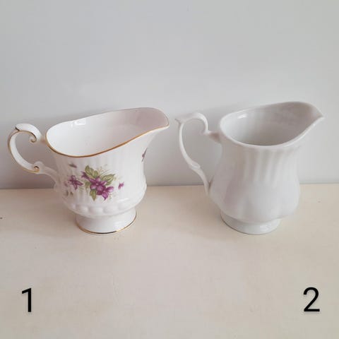 Arabian kermakko ja sokerikko kukkakuvioilla ja kultareunuksilla. Molemmissa kauniit kahvat ja saman sarjan koristeet.