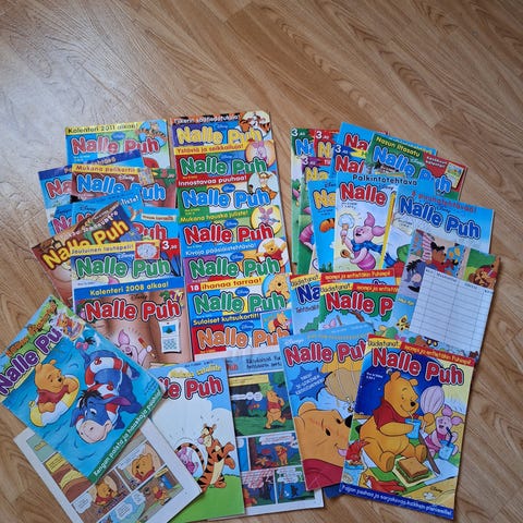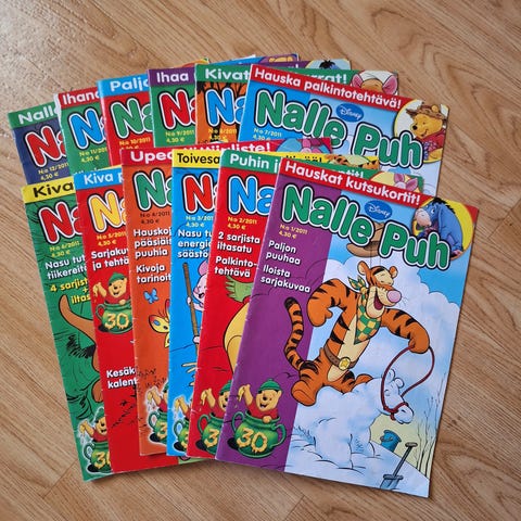 Myydään nippu Disney Nalle Puh- lehtiä, useita eri numeroita vuosilta 2012-2014, yht. 15 kpl.Lehdissä on sivukaupalla tehtäviä, tarinoita ja kuvia.