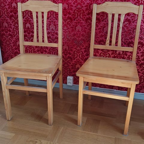 Kauniit puutuolit, täyttä puuta, tukevat, ei nitise, ehjät, ei suurempaa käytön jälkeä, ei ole mitään läiskiä aurinko peilaa vain, 4 kpl 40€