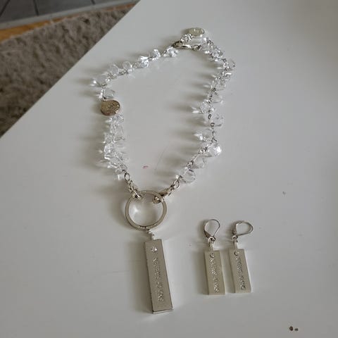 Samaa sarjaa kaulakoru. Rannekoru eri merkkiä, hopeoitu.