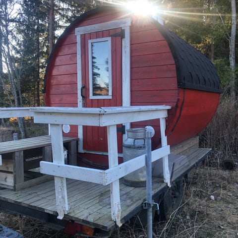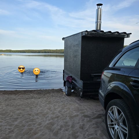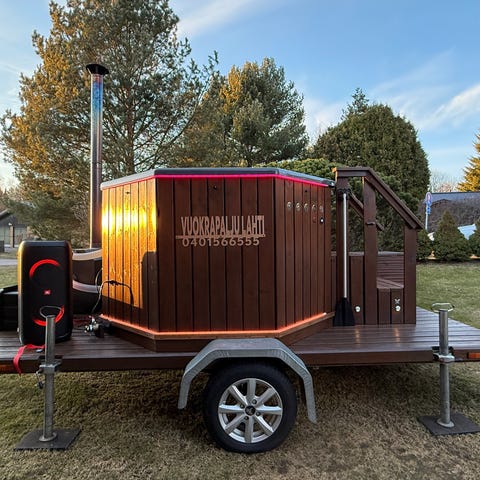 Tästä hieno kärry saunomisesta ja paljuilusta tykkääville.