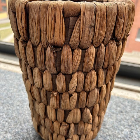 Tummanruskea punottu kori polven mittainen nouto friisilä ja maksu käteinen