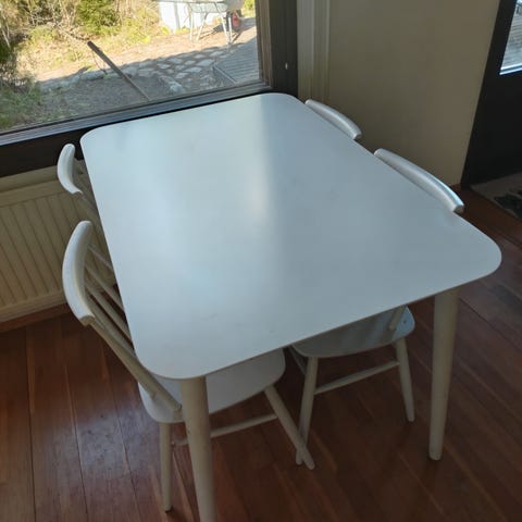 Annetaan pois vanha täyspuu ruokapöytä. pinnassa muutama naarmu, mutta esim. pienellä käsittelyllä voisi saada ihan uuden elämän!