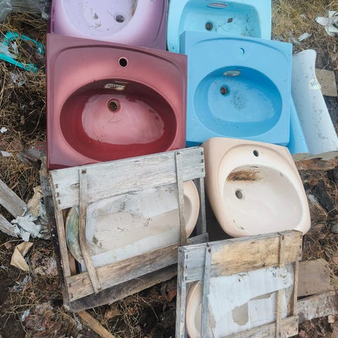 Tästä nyt kunnostettu vanha valurautainen kaatoallas/pesuallas uuteen osoitteeseen. Vanhat maalit ja ruosteet hiekkapuhallettu pois ja maalattu sen jälkeen jauhemaalilla antiikinkuparin sävyiseksi. Kuvia saa työvaiheista kysymällä jos kiinnostaa.