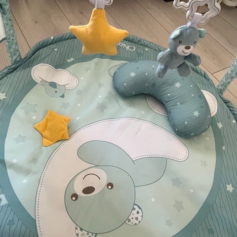 Fisher-Price vauvan leikkimatto. Kaikkia leluja ei tallella. Mukana tulee kuvassa olevat 3 lelua ja yksi kiinnityskoukku. Kaareen saa helposti kiinnitettyä muitakin leluja tai vaihtoehtoisesti lelut helppo irrottaa ja käyttää muualla (esim.vaunuissa). Nouto Turku tai toridiili.