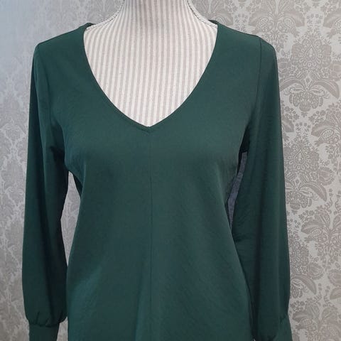 Vihreä Zaran pitkähihaisen mallinen juhla-/cocktailmekko kokoa L, yksivärinen kangas. Pyöreä pääntie ja suora leikkaus, takana pystysauma.