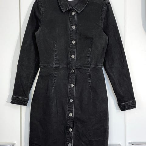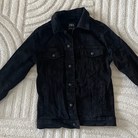 Zaran musta farkkumekko, koko M. Edessä napitus ylös asti ja rintataskut, pitkät hihat nappimanseteilla.