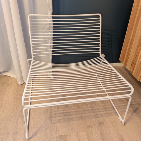 Myydään hyvässä kunnossa olevan Hayn valkoinen metallituoli.