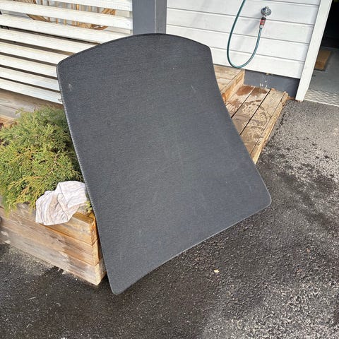 Takaluukun matto on valmistettu öljyä, liuottimia ja pakkasta kestävästä muovista, joten se on myös helppo pestä ja puhdistaa. Materiaali on myös vedenpitävää, hajutonta, lämpötilan vaihteluita kestävää sekä öljy- ja kemikaaliroiskeita hylkivää sekä 100% kierrätettävää materiaalia.