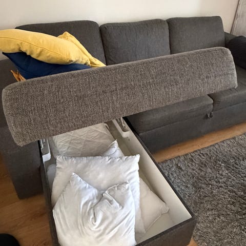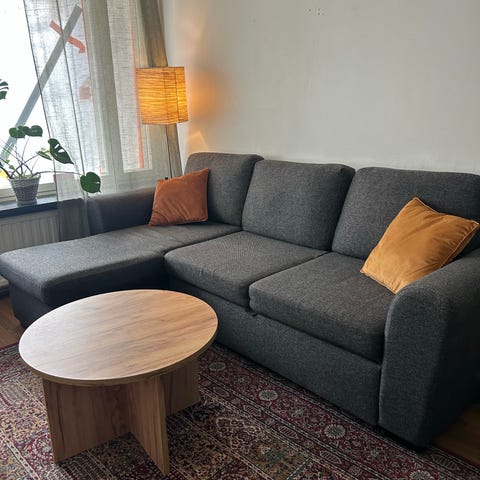 Ehjä ja siisti kuvan vuodesohva / divaani myytävänä. Koostui kahdesta osasta. Kiinnitys ruuvit mukana. Sopii erinomaisesti esimerkiksi mökille. Ei hajuja.