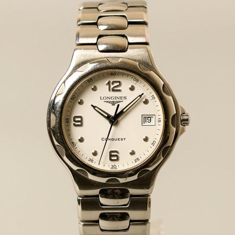 Klassisesti muotoiltu rannekello sveitsiläiseltä merkiltä Longines, toteutettuna juhlavuosimalina merkin 150-vuotisjuhlan kunniaksi (1832–1982). Kellossa on kvartsikoneisto, keskellä ajan ilmaisu ja kuuden tuntia sijaitseva pieni sekunti. Kellotaulu on sampanjanvärinen arabialaisine numeroineen ja huolellisesti viimeisteltyine minuuttierittelyineen. Kansi on kullattu, takakansi ruostumattomasta teräksestä, merkintä 'Longines 150', ja varustettu yksilöllisellä sarjanumerolla.Kellon mukana tulee vakuutusraportti, jonka on äskettäin laatinut vanha omistaja (ei arviointitoimisto). Katso kuva