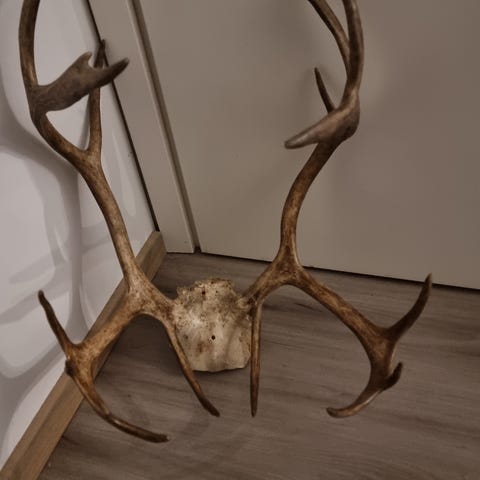 Käyttämättömät peuransarvet + taustalevy (mitat kuvissa). Peuransarvet käsitelty/valkaistu.