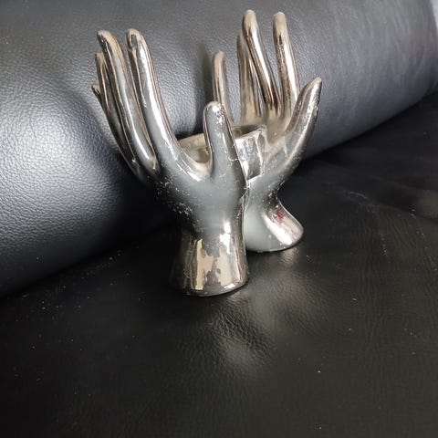 Sisustuskutsuilta ostettu aikoinaan, en muista minkä nimisen. Kaulakoruille tai sellaisenaan koristeeksi. Jknv naarmuja, kun läheltä katsoo. Oksat sen verran paksut, ettei korvakorulle ole sopiva. Korkeus n.30cm, leveys jalustassa 10cm.