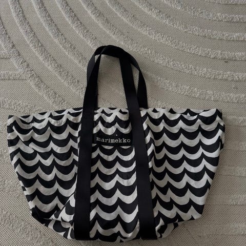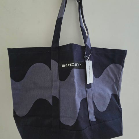 Myydään Marimekon hyväkuntoinen Valmu Laine -kassi. Laukun koko on 52 x 32 x 20 cm. Kahvat ovat jämäkät. Muutoin kassi on ohutta kangasta. Laukussa on vetoketjusuljenta ja sisäpuolella on yksi tasku.