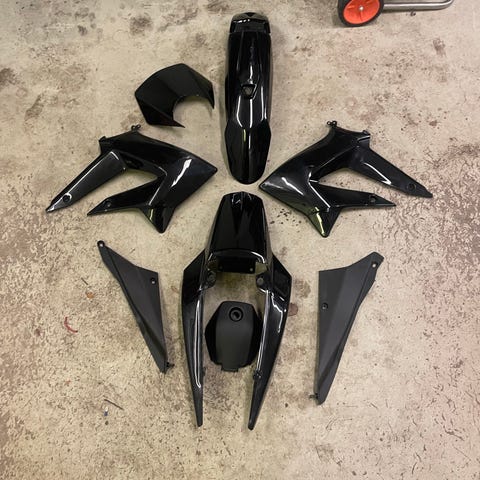 Beta RR 50 Katessarja. Oikeassa etukatteessa on pieni halkeama ja maalia lähtenyt. Takakatteessa on pieni maalin lähtö mutta ei mitään halkeamaa pieni mandariini pinta on mutta ei haittaa ajoa.