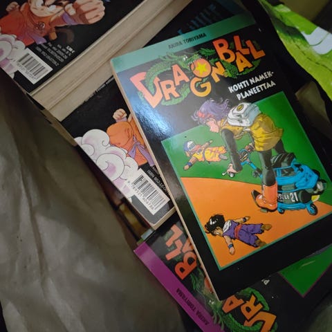 ONEPIECE numerot 1, 2, 11 ja 12, Dragon Ball numerot 5,26, 34,39 ja 42, Ranma 12 numerot 36 ja 38 ja Naruto numerot 9 ja 10 Hinta kaikille yhteensä 25 €
