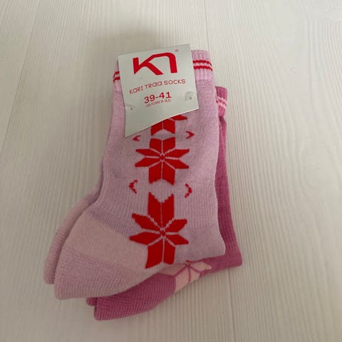 Uudet lämpimät sukat, liukuestenystyröitä. Lukee one size mutta sanoisin että sopivat jalkaan joka kokoa 40-41.