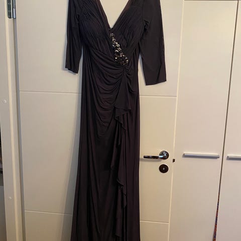 Ralph Laurenin pitkä musta mekko kokoa M, pehmeää polyesteriä. Edessä kietaisumainen yläosa mekon alaosassa vasemmalla puolen vasen jalka paljastuu kauniisti.