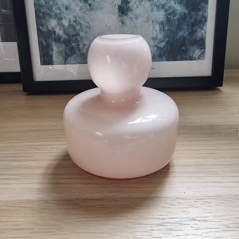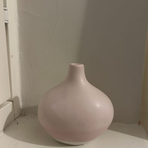 Myydään keraaminen maljakko, väri vanha roosa. Mitat K 17cm, L 9,5cm.