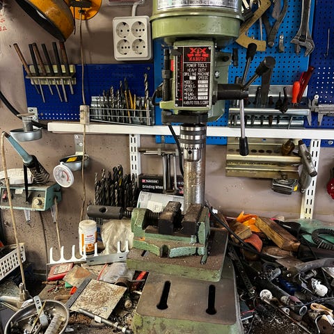 Myydään pylväsporakone ja kuviosaha samassa paketissa. Molemmissa perussäädöt ja pöytätasot, sähkökäyttöiset.