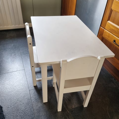 Myydään puinen ja tukeva puoliympyrän muotoinen pöytä, sekä kolme tuolia. Myydään kaikki pakettina. Pöydässä ja tuoleissa pientä kulumaa, sekä käytönjälkiä. Kunto hyvä. Kuvissa näkyy.