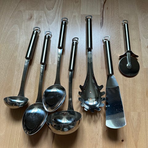 10 paria WMF:n aterimia: 10 haarukkaa, 10 veistä.