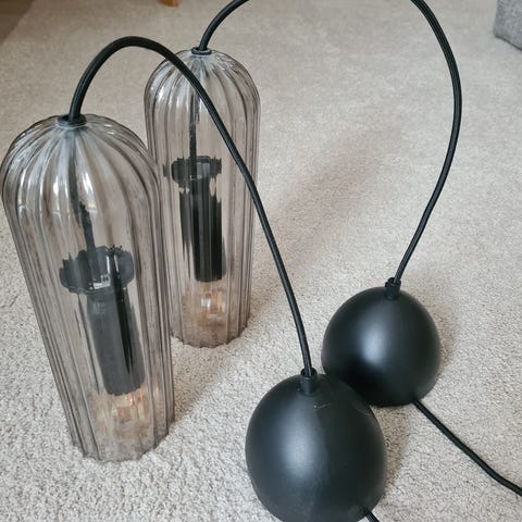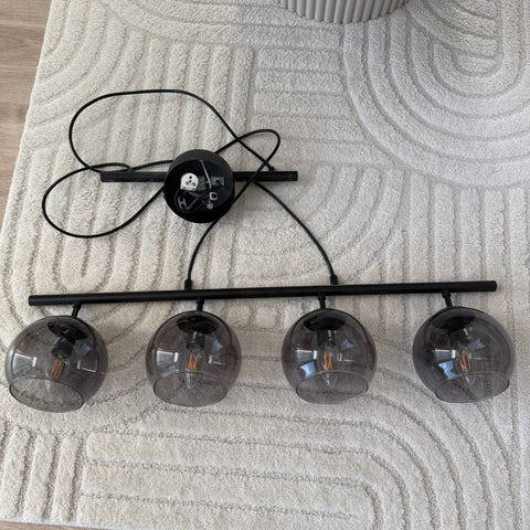 Moderni plafondi mattamustalla metallirungolla ja savulasi varjostimilla, jotka sopivat hienosti monenlaiseen sisustusympäristöön. Molekyl plafondia varten tarvitaan 7 valonlähdettä G9-kannalla, enintään 25 W teholla.