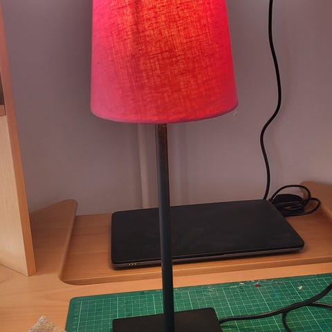 Varjostin on ehjä, mutta pieni kahvitahra on toisessa sivussa (kts kuva). Ei juuri näy, kun valo päällä.