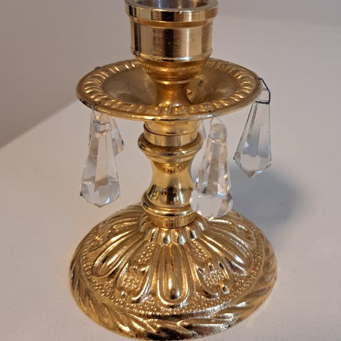 Turun kristallin pieni, kullattu kynttilänjalka, k. 7,5, pohja 5,5, pidike lev. n. 1,5. 1980-lukua.