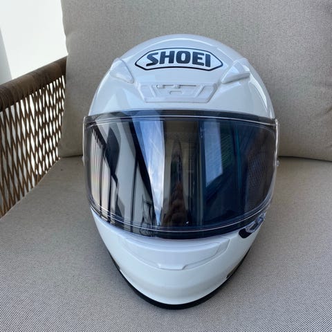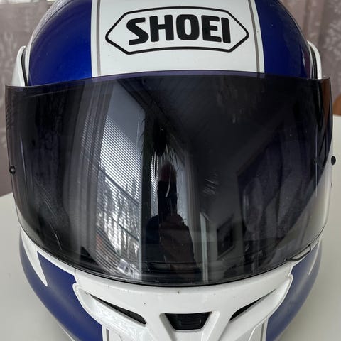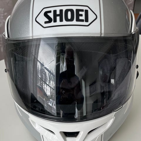 Shoei valkoinen umpikypärä tummalla visiirillä, koko L.