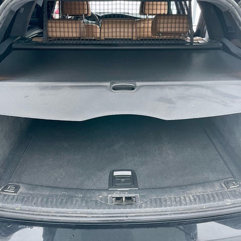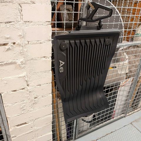 Audi alkuperäinen tavaratilan suojalevy, taittuva malli. Tumma pinta, muotoiltu reunoilta ja toisella puolella tarra varaosanumerolla.