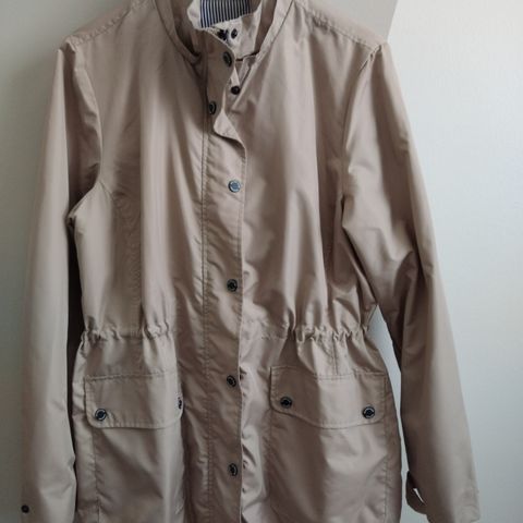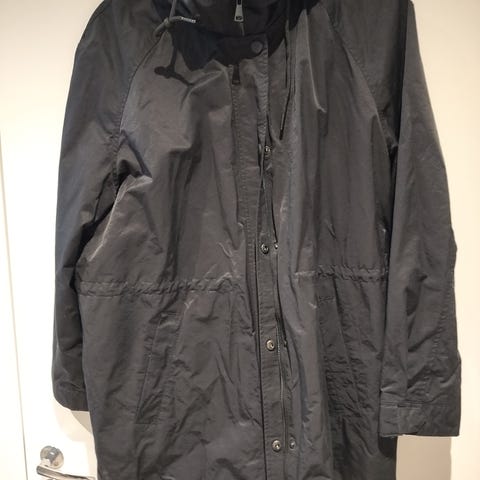 Vedenpitävä. Vetoketjulliset taskut. Huppu rullautuu kauluksen sisälle.