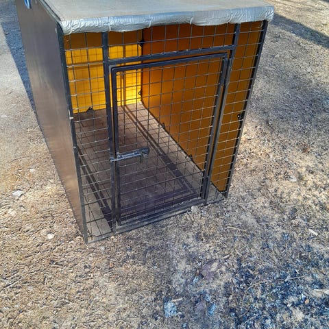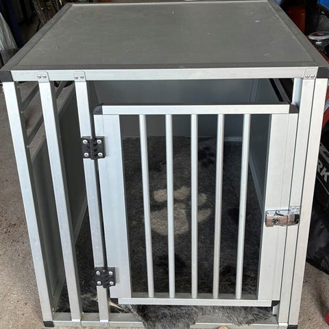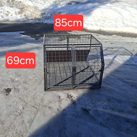Farmariautoon sopiva Vartiaisen tukeva häkki. Häkissä on kaksi ovea ja se voidaan jakaa väliseinällä. Välliseinä tulee mukaan. Levyosat on vesivaneria. Riippulukot avaimineen kuuluu kauppaan. Ei salpoja ovissa.