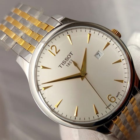 Tissot - Chemin Des Tourelles Powermatic 80 - T099.407.22.038.00Kotelo: ruostumaton teräs, kultausKoneisto: Sveitsissä valmistettu automaattikaliiberi Powermatic 80.111 Kellotaulu: hopeaLeveys: Ø 42 mm (ilman kruunua)Lasi: safiirilasiNauha: alkuperäinen kultaus/valmistajan teräksinen rannekeRanteen ympärys: 21 cmKunto: Uusissa mitoissa!Takuu: 1 vuosi "de Horlogemeesters"Toimitus: alkuperäisessä laatikossa + asiakirjat (allekirjoittamatta) + aitoustodistus "de Horlogemeesters."Rekisteröity ja vakuutettu lähetys (DHL Express).