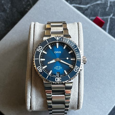 Oris - 01 400 7769 6355-07 8 22 09PEBKansi: ruostumaton teräs / keramikkabezeli / 18k keltakultaKello: sveitsiläiskoneistoautomatiikka calib. 400-2Kellotaulu: sininenHalkaisija: 41,5 mm (ilman kruunua)Lasi: safiirilasiRanneke: alkuperäinen ruostumattoman teräksen rannekeRanteen ympärysmitta: noin 21 cmKunto: uudenveroinen!Takuu: Oris-takuu (noin 10 vuotta!)Toimitus: originaalilaatikon kanssa + alkuperäinen Oris-todistus (12/2025!) + aitoustodistus "de Horlogemeesters"Toimitusmuoto: tämä kello lähetetään rekisteröitynä ja vakuutettuna (DHL Express).