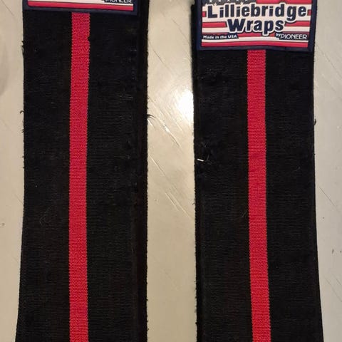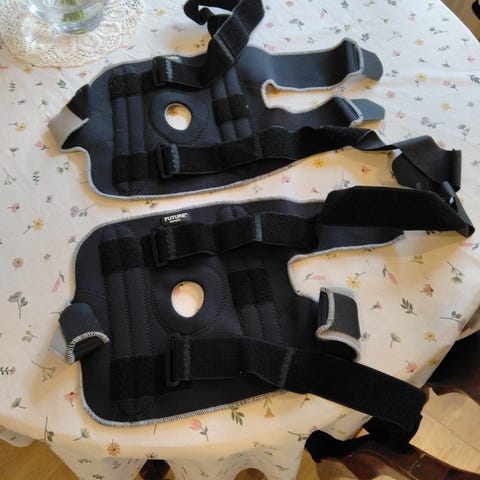 Pari kertaa käytetyt rannetuet. Pituus 55 cm (velcronauhan kanssa 69 cm). Leveys 7,5 cm.