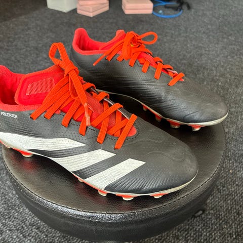 New Balance Furon -nappikset, koko 41 ja nauhakiinnitys. Mustat kengät valkoisilla logoilla ja punaisilla napeilla pohjassa.