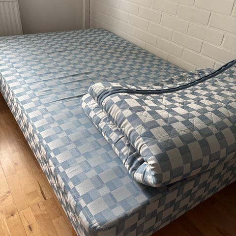 Giving away a bed and the mattress. Bed is 120 cm wide and it is quite soft to sleep on. If possible, you could come and get it from Etu-Töölö before Wednesday 31.4.