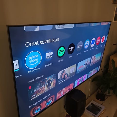 Erittäin hyvässä kunnossa, laadukas ja tyylikäs Samsungin 65-tuumainen äly-TV. Mukana tulee One For All universaali TV-teline tummanruskeilla puisilla jaloilla sekä tarvittaessa TV:n alkuperäinen pakkaus.