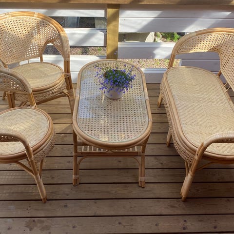 Lähes uudenveroisessa kunnossa olevat rottinkikalusteet.