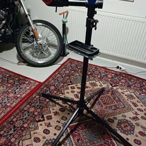 Hyväkuntoinen ja vähän käytetty säädettävä huoltoteline. Max pyörän paino 30kg