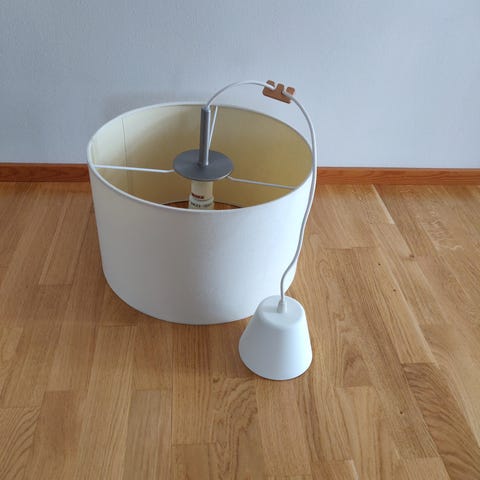Ikean valkoinen kattovalaisin. Johdon suojakuvussa pieni halkeama. Vain nouto Rovaniemen keskustasta.