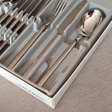 Monica Försteri on suunnitellut Genselle teräsestä valmistetut aterimet, jotka ovat konepestäviä. Ostin aterimet kauniin muotoilun innoittamina. Olen avannut pakkaukset ja pessyt tiskikoneessa valmiiksi käyttöä varten jota ei sitten tulekaan. Käyttökokemuksia voi lukea esim. täälä https://www.kitchentime.fi/tuotemerkit/gense/dorotea-aterimet/