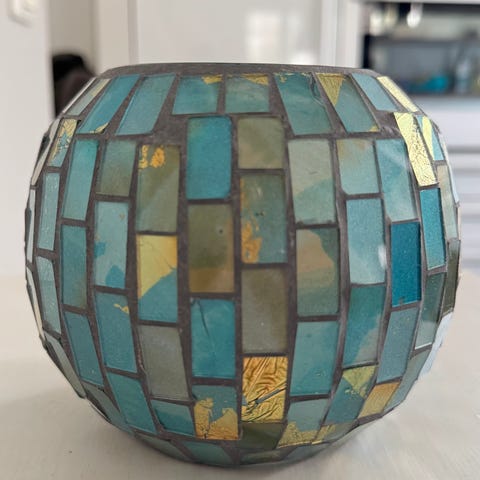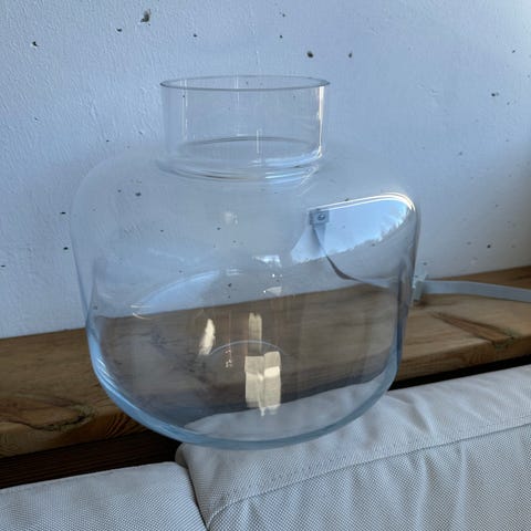 H&M Home lasimaljakko koristeellisella, kohokuvioidulla pinnalla. Korkeus 18 cm ja leveys noin 17 cm.