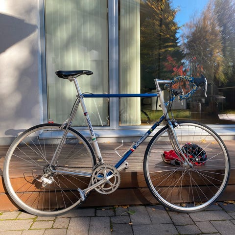 Tarjolla hienokuntoinen ja näyttävä 2000-luvun italialainen maantiepyörä, joka yhdistää klassisen ulkonäön ja laadukkaat komponentit. Runko on legendaarisen Olmon käsialaa ja kokonaisuus on kasattu alkuperäisellä Campagnolo Veloce -osasarjalla, lukuunottamatta kampia, jotka ovat Centaur. Pyörässä on uudet vaijerit ja kaapelit.