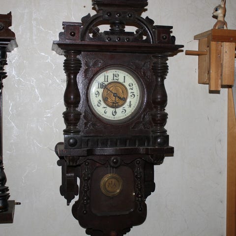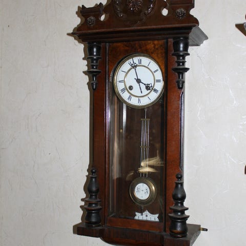 Kuvan mukainen vanha seinäkello. Täysin toimiva ja hienokuntoinen kello.