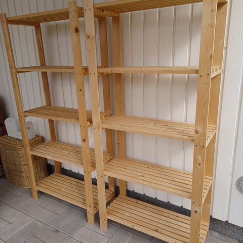 Jykevä puinen hylly, joka taipuu moneen. Vahvat hyllyt ja helppo siirtää kasattunakin.